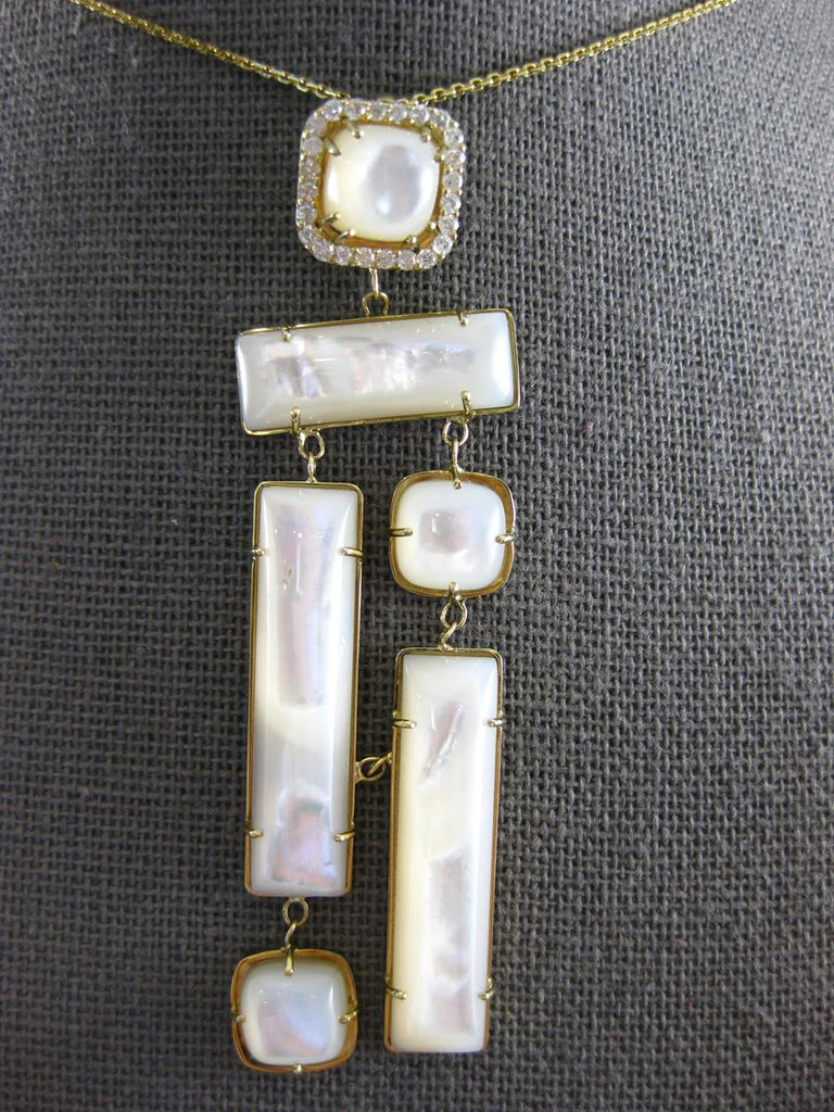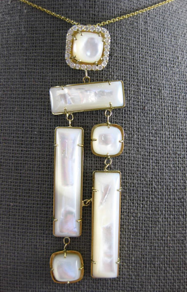 0.35CT DIAMOND & AAA MOTHER OF PEARLS 14K YELLOW GOLD 3D MULTI SHAPE FUN PENDANT