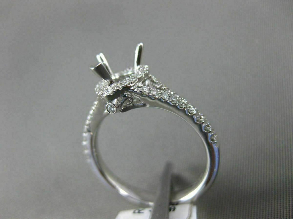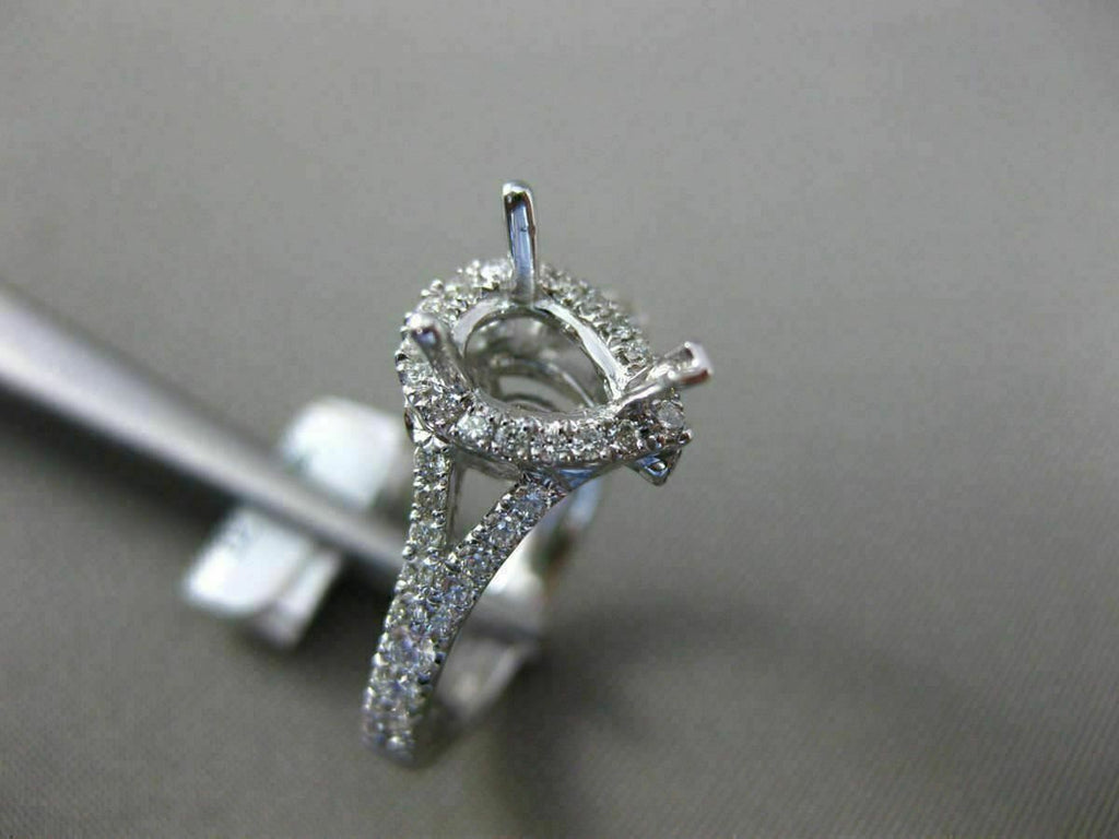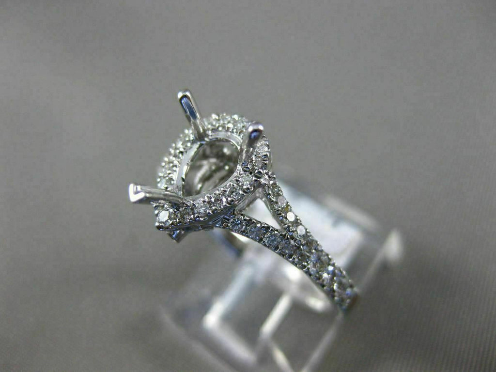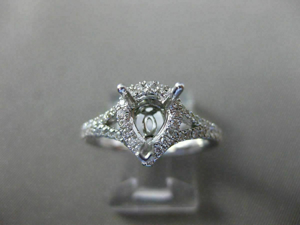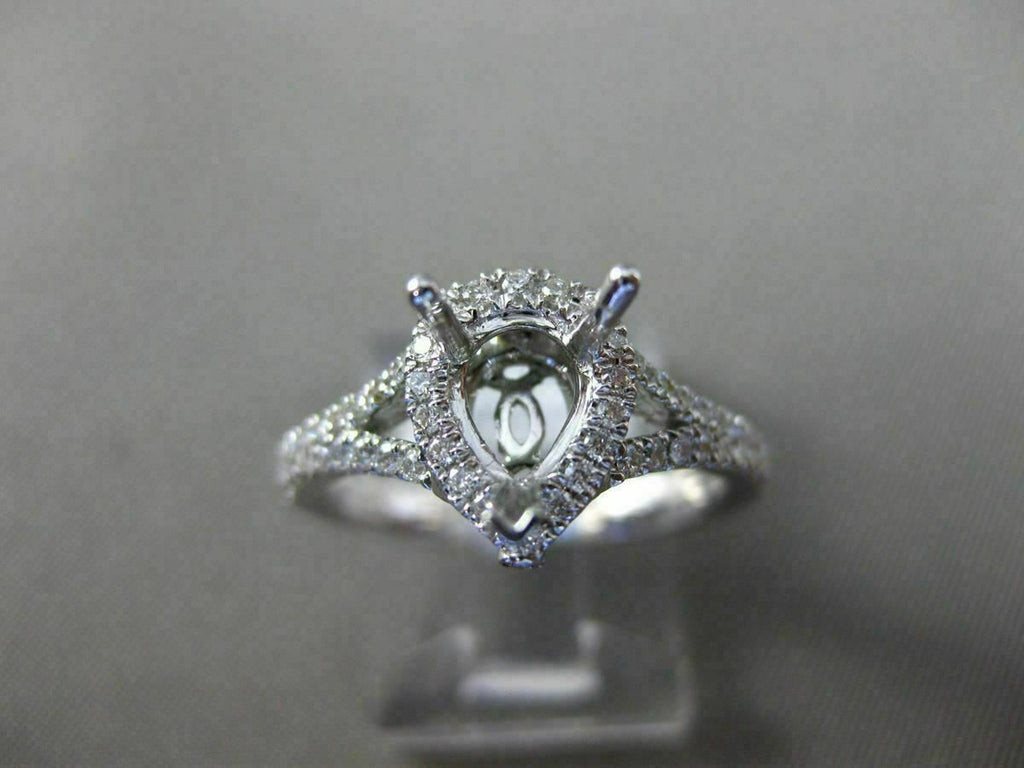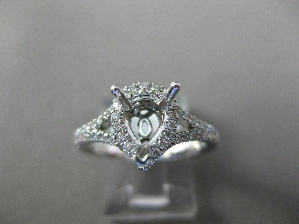 18KT WHITE GOLD SEMI MOUNT ENGAGEMENT RING. 3D PEAR SHAPE SEMI ETERNITY FILIGREE DESIGN. DIAMONDS ARE F/G COLOR, VSSI CLARITY .39 CARATS. FITS UP TO 6mm X 4mm PEAR CUT STONE. MEASURES 10mm WIDE. RING SIZE 6.25. CAN BE SIZED BY OUR MASTER JEWELER. WRITTEN APPRAISAL AVAILABLE. COMES IN A PRESENTABLE GIFT BOX