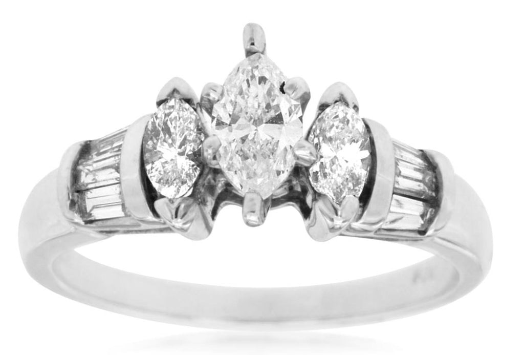 0.50CT DIAMOND 14KT WHITE GOLD 3D MARQUISE & BAGUETTE CLASSIC ENGAGEMENT RING