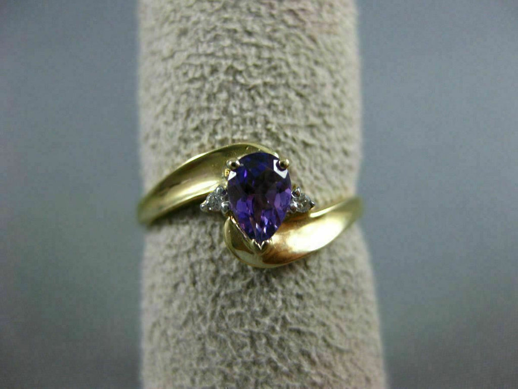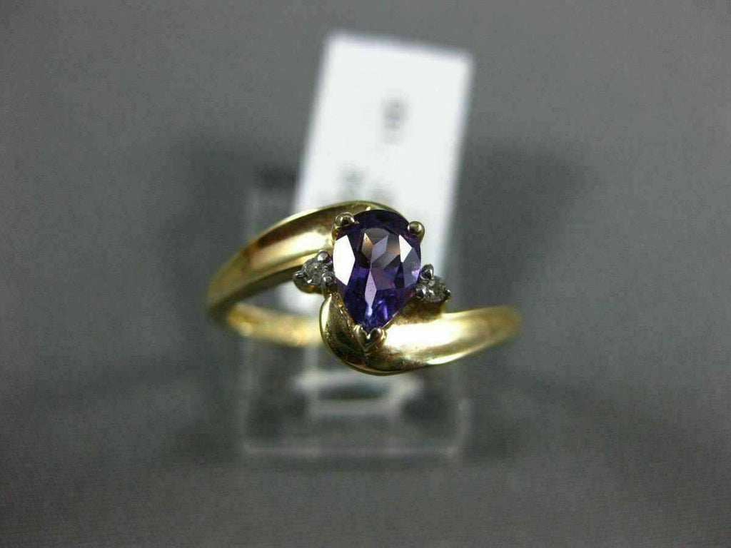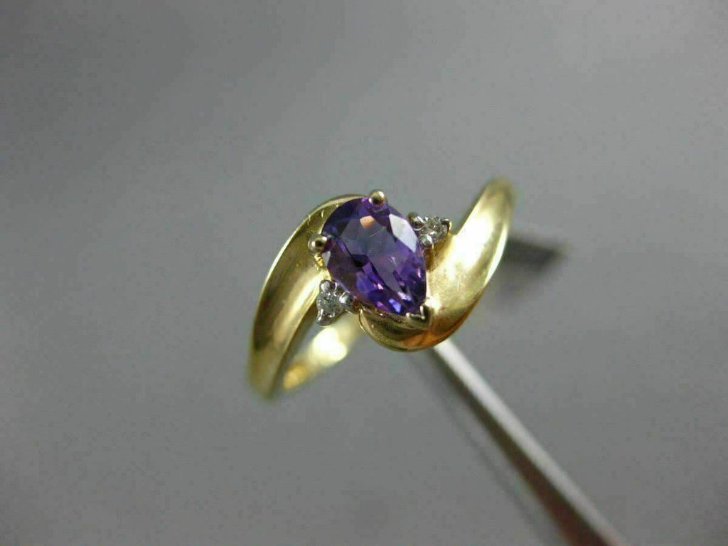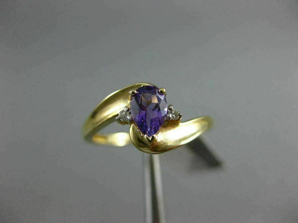0.52CT DIAMOND & AAA PEAR SHAPE AMETHYST 14KT YELLOW GOLD 3D 3 STONE PROMISE RING