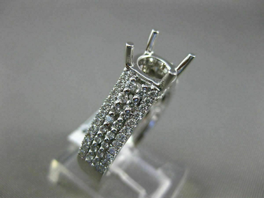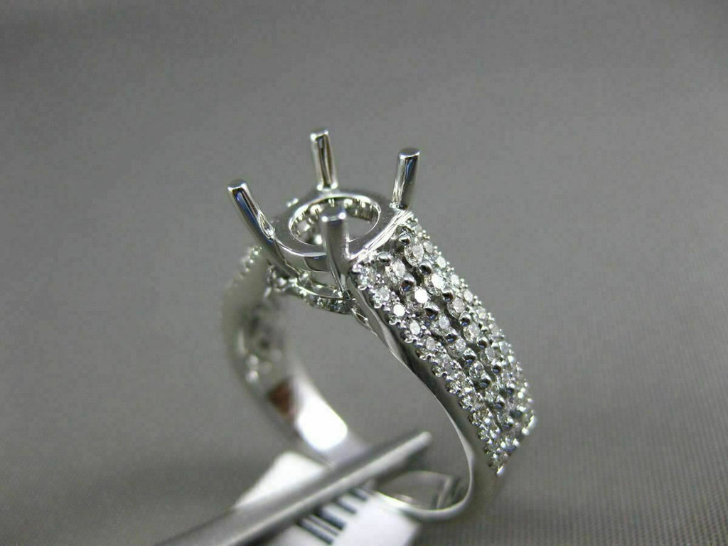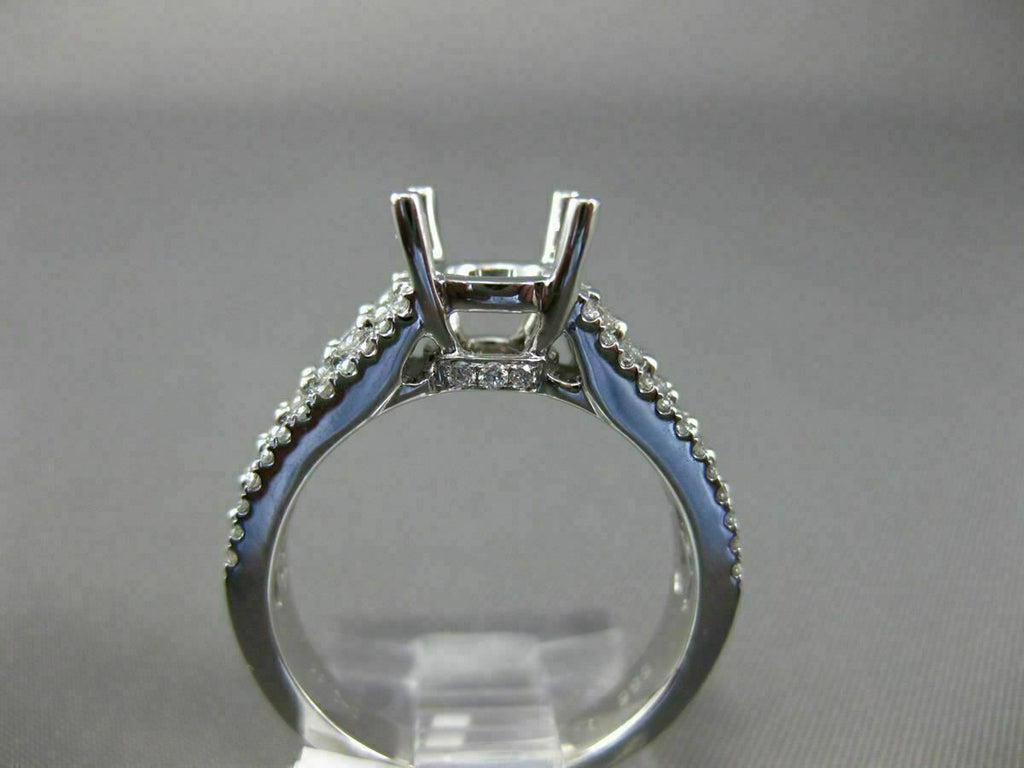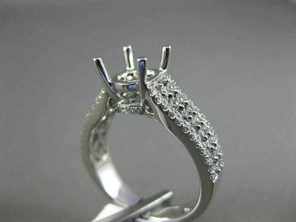 18KT WHITE GOLD SEMI MOUNT ENGAGEMENT RING. 3D MULTI ROW FOUR PRONG SEMI ETERNITY DESIGN. DIAMONDS ARE F/G COLOR, VSSI CLARITY .55 CARATS. FITS UP TO 6mm STONE. MEASURES 6mm WIDE. RING SIZE 6.50. CAN BE SIZED BY OUR MASTER JEWELER UPON REQUEST. WRITTEN APPRAISAL AVAILABLE. COMES IN A PRESENTABLE GIFT BOX