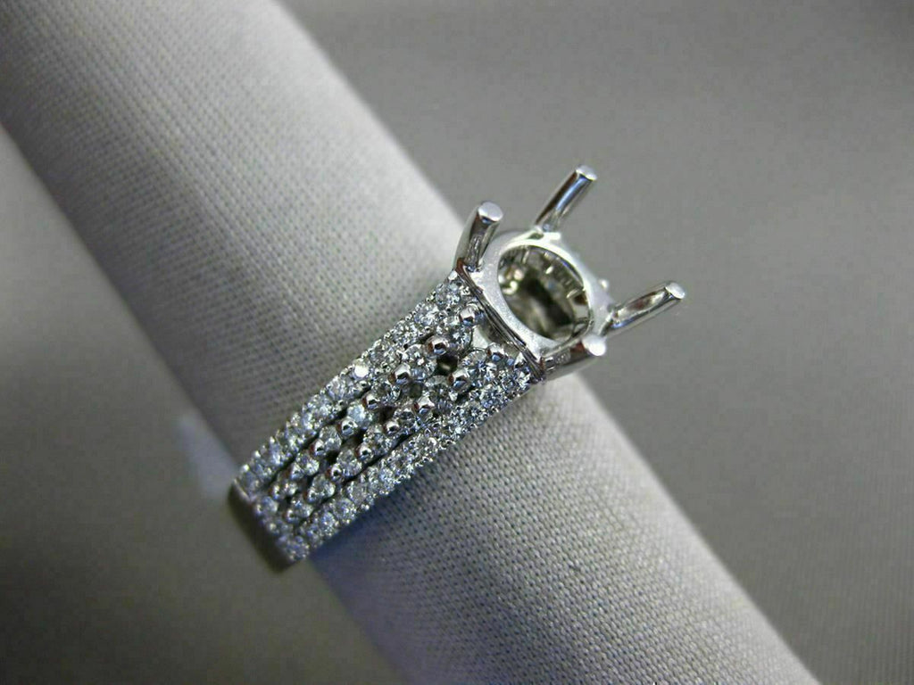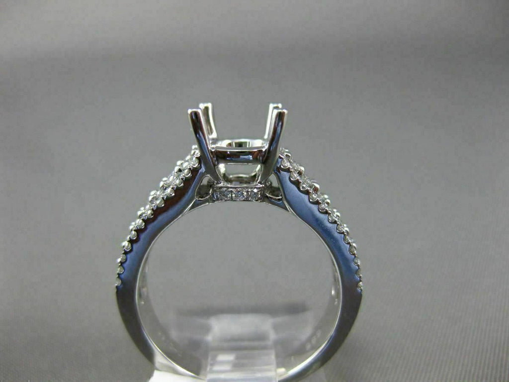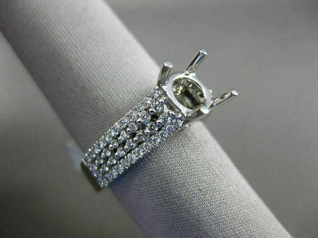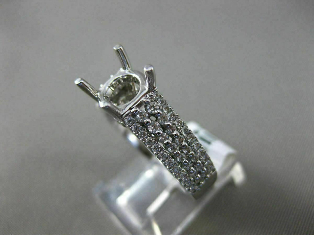 18KT WHITE GOLD SEMI MOUNT ENGAGEMENT RING. 3D MULTI ROW FOUR PRONG SEMI ETERNITY DESIGN. DIAMONDS ARE F/G COLOR, VSSI CLARITY .55 CARATS. FITS UP TO 6mm STONE. MEASURES 6mm WIDE. RING SIZE 6.50. CAN BE SIZED BY OUR MASTER JEWELER UPON REQUEST. WRITTEN APPRAISAL AVAILABLE. COMES IN A PRESENTABLE GIFT BOX