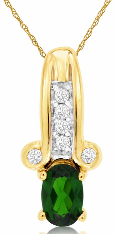 14KT YELLOW GOLD FUN FLOATING PENDANT. 3D DESIGN. ROUND DIAMONDS ARE F/G COLOR, VSSI CLARITY .10 CARATS. AAA EXTRA FACETED OVAL RUSSALITE IS .45 CARATS. COMES ON A 14KT GOLD DIAMOND CUT 16" INCH CHAIN. WRITTEN APPRAISAL AVAILABLE. COMES IN A PRESENTABLE GIFT BOX.