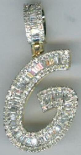 .57CT DIAMOND 14K YELLOW GOLD 3D ROUND & BAGUETTE G INITIAL FUN FLOATING PENDANT