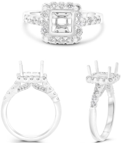 .57CT DIAMOND 14KT WHITE GOLD 3D SQUARE HALO 4 PRONG SEMI MOUNT ENGAGEMENT RING