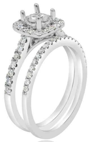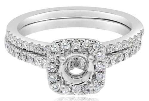 .57CT DIAMOND 18K WHITE GOLD ROUND SQUARE SEMI MOUNT ENGAGEMENT WEDDING RING SET