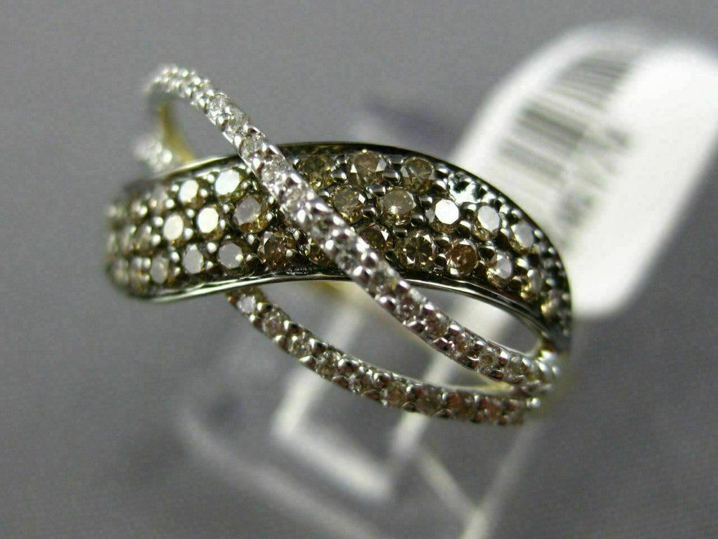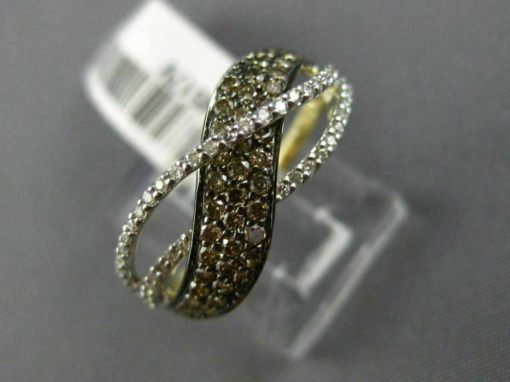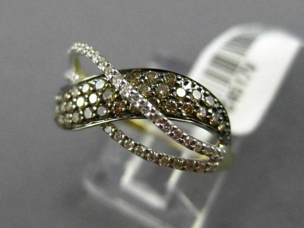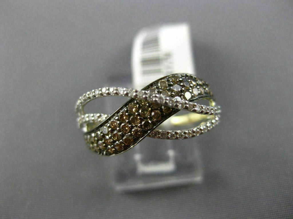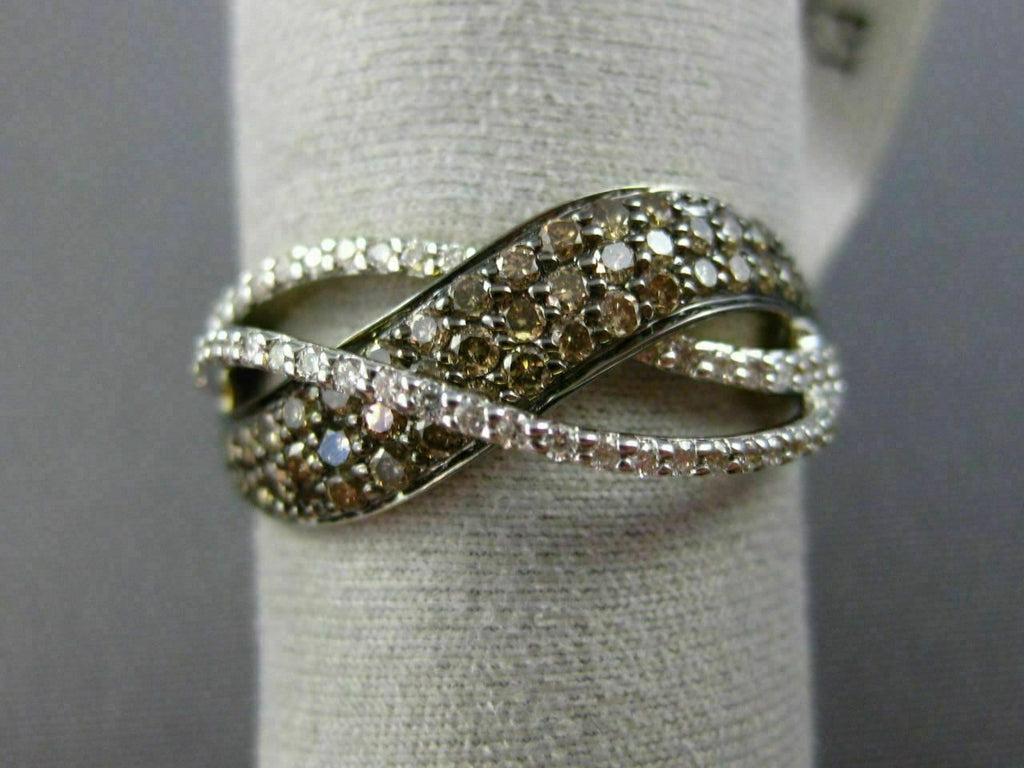 14KT WHITE & BLACK GOLD RING. 3D MULTI ROW CRISS CROSS INFINITY DESIGN. DIAMONDS ARE F/G COLOR, VSSI CLARITY .17 CARATS. CHOCOLATE FANCY DIAMOND ARE .42 CARATS. MEASURES 8mm WIDE. RING SIZE 7. CAN BE SIZED BY OUR MASTER JEWELER UPON REQUEST. WRITTEN APPRAISAL AVAILABLE. COMES IN A PRESENTABLE GIFT BOX