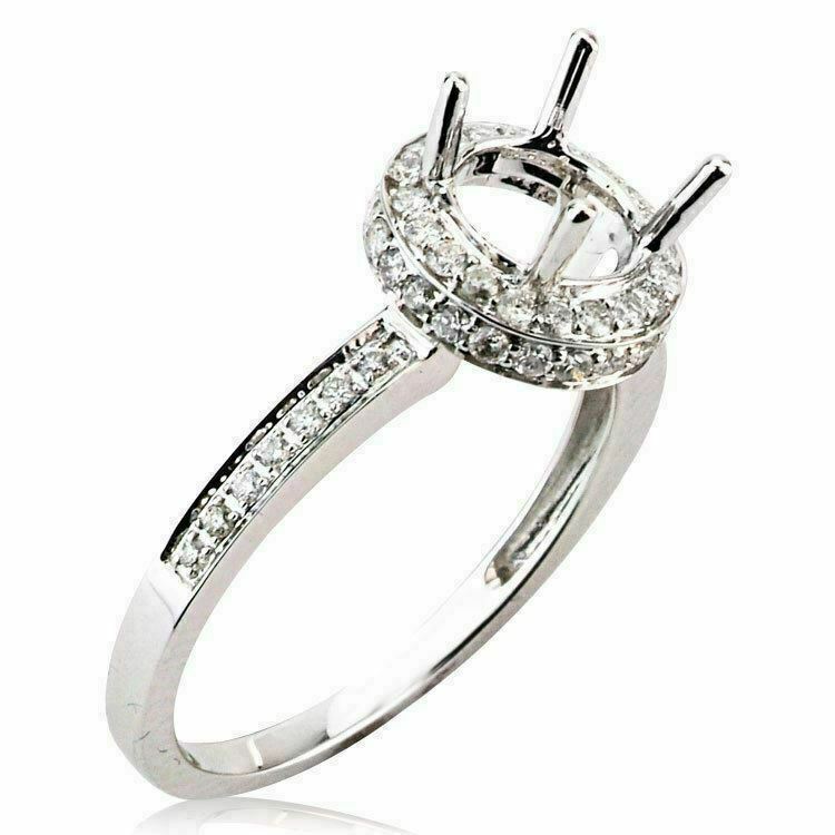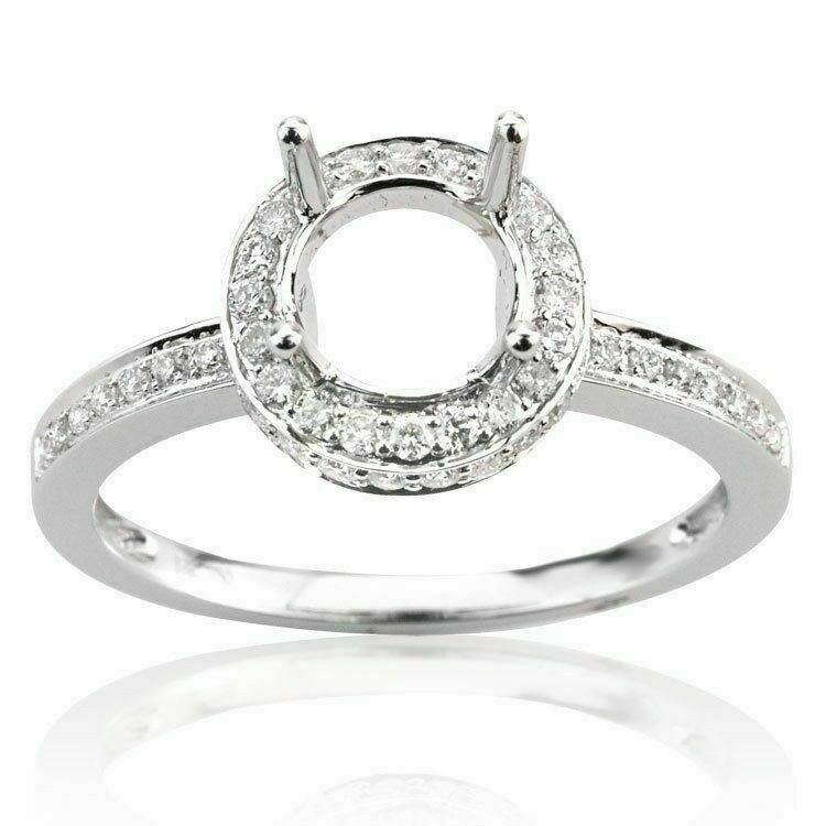 0.60CT DIAMOND 14KT WHITE GOLD 3D 4 PRONG HALO SEMI MOUNT ENGAGEMENT RING