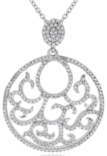 .60CT DIAMOND 14KT WHITE GOLD 3D ROUND OPEN FILIGREE FLORAL FUN FLOATING PENDANT