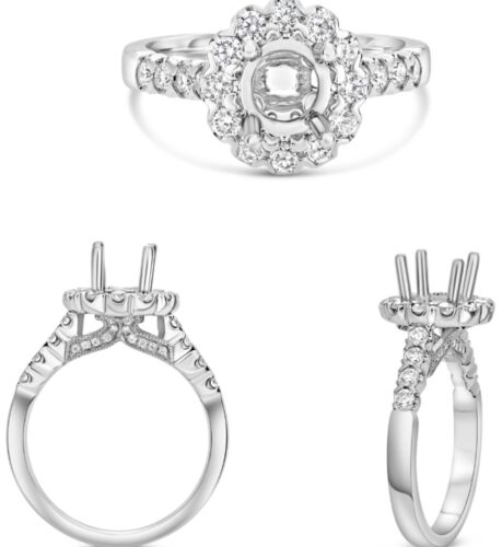 .60CT DIAMOND 14KT WHITE GOLD ROUND 3D FLOWER 4 PRONG SEMI MOUNT ENGAGEMENTRING