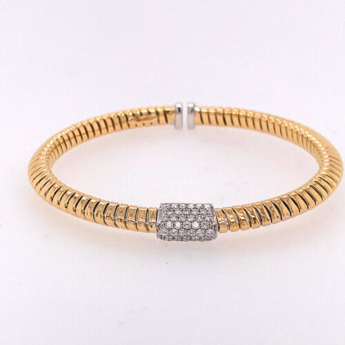 .60CT DIAMOND 18KT 2 TONE GOLD 3D DOME SHAPE PAVE FLEXIBLE CUFF BANGLE BRACELET