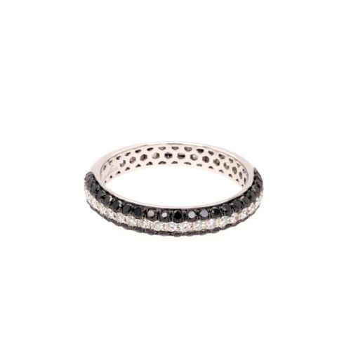 .60CT WHITE & BLACK DIAMOND 18KT WHITE GOLD CLASSIC 3 ROW PAVE ANNIVERSARY RING
