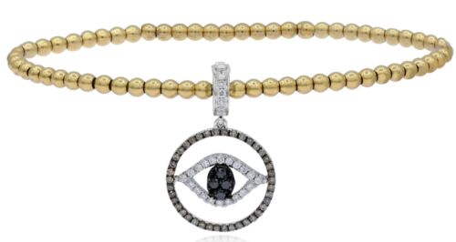 .62CT WHITE BLACK & CHOCOLATE FANCY DIAMOND 18KT 2 TONE GOLD EVIL EYE BRACELET