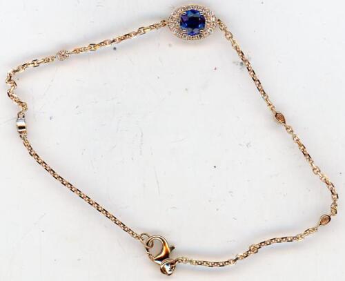14KT ROSE GOLD FUN BRACELET. 3D LUCKY EVIL EYE BY THE YARD DESIGN. ROUND DIAMONDS ARE F/G COLOR, VSSI CLARITY .15 CARATS. AAA ROUND SAPPHIRES (SIGN OF DIFFUSION) ARE .52 CARATS. 7" INCHES LONG.