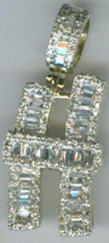 .70CT DIAMOND 14K YELLOW GOLD 3D ROUND & BAGUETTE H INITIAL FUN FLOATING PENDANT
