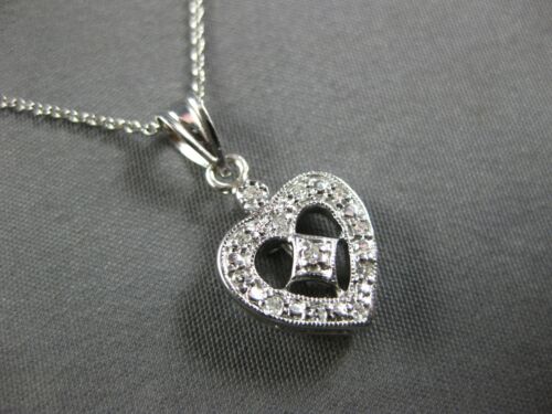 .70CT DIAMOND 14KT WHITE GOLD 3D FILIGREE MILGRAIN HEART FLOATING PENDANT #27668