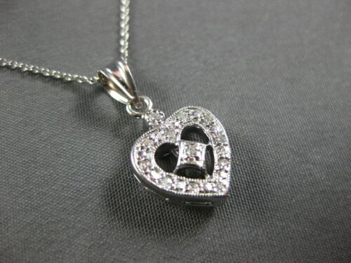 14KT WHITE GOLD FLOATING PENDANT. 3D FILIGREE MILGRAIN CLASSIC HEART DESIGN. DIAMONDS ARE F/G COLOR, VVS/VS CLARITY .70 CARATS. MEASURES 18.5mm X 11mm. COMES ON A 14KT GOLD DIAMOND CUT 16" INCH CHAIN. WRITTEN APPRAISAL AVAILABLE. COMES IN A PRESENTABLE GIFT BOX.