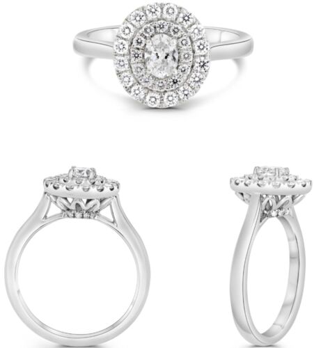 .70CT DIAMOND 18KT WHITE GOLD 3D OVAL & ROUND DOUBLE HALO FLORAL ENGAGEMENT RING