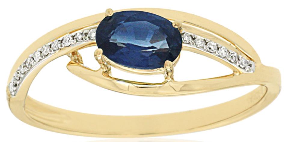 14KT YELLOW GOLD LOVE RING. 3D CRISS CROSS DESIGN. ROUND DIAMONDS ARE F/G COLOR, VSSI CLARITY .05 CARATS. AAA OVAL SAPPHIRE IS .65 CARATS. RING SIZE 7. CAN BE SIZED BY OUR MASTER JEWELER UPON REQUEST. WRITTEN APPRAISAL AVAILABLE. COMES IN A PRESENTABLE GIFT BOX.