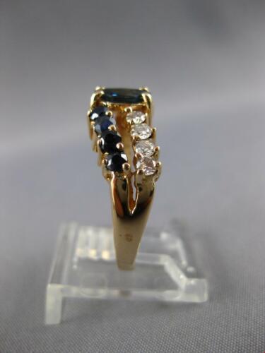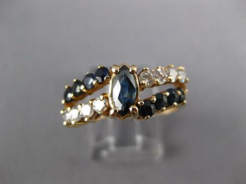 14KT YELLOW GOLD FUN RING. 3D TWO ROW DESIGN. ROUND DIAMONDS ARE F/G COLOR, VVS/VS CLARITY .20 CARATS. AAA ROUND AND MARQUISE SAPPHIRES ARE .50 CARATS. MEASURES 8mm WIDE. RING SIZE 8.25. CAN BE SIZED BY OUR MASTER JEWELER UPON REQUEST. WRITTEN APPRAISAL AVAILABLE. COMES IN A PRESENTABLE GIFT BOX.