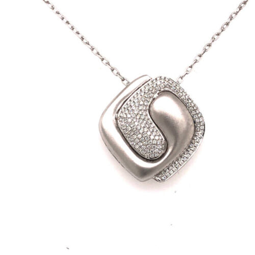 .71CT DIAMOND 18KT WHITE GOLD 3D SQUARE LOVE KNOT GEOMETRICAL FLOATING PENDANT