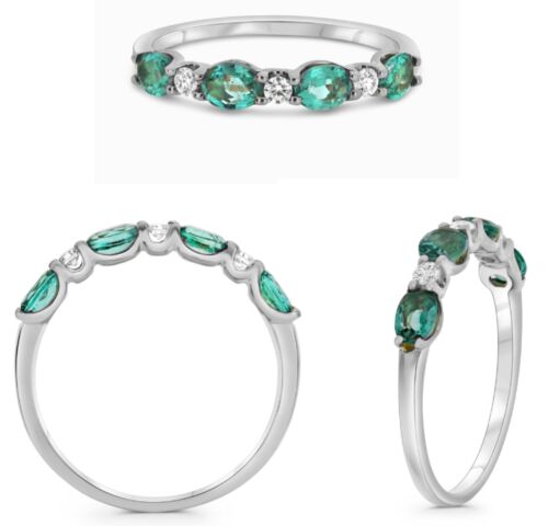 14KT WHITE GOLD FUN RING. 3D CLASSIC SEVEN STONE LUCIDA DESIGN. ROUND DIAMONDS ARE F/G COLOR, VS CLARITY .09 CARATS. AAA OVAL EMERALDS ARE .63 CARATS. RING SIZE 6.5. CAN BE SIZED BY OUR MASTER JEWELER UPON REQUEST.