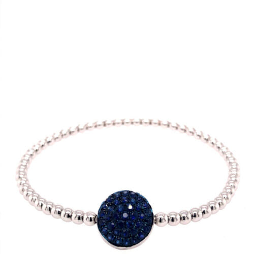 18KT WHITE GOLD FUN LOVE BRACELET. 3D ADJUSTABLE MULTI BEAD DESIGN. AAA SAPPHIRES ARE .73 CARATS. 7" INCHES LONG.