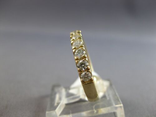 14KT YELLOW GOLD WEDDING ANNIVERSARY RING. 3D CLASSIC FOUR PRONG SEMI ETERNITY DESIGN. ROUND DIAMONDS ARE F/G COLOR, VSSI CLARITY .73 CARATS. MEASURES 3mm WIDE. RING SIZE 7. CAN BE SIZED BY OUR MASTER JEWELER UPON REQUEST. WRITTEN APPRAISAL AVAILABLE. COMES IN A PRESENTABLE GIFT BOX.