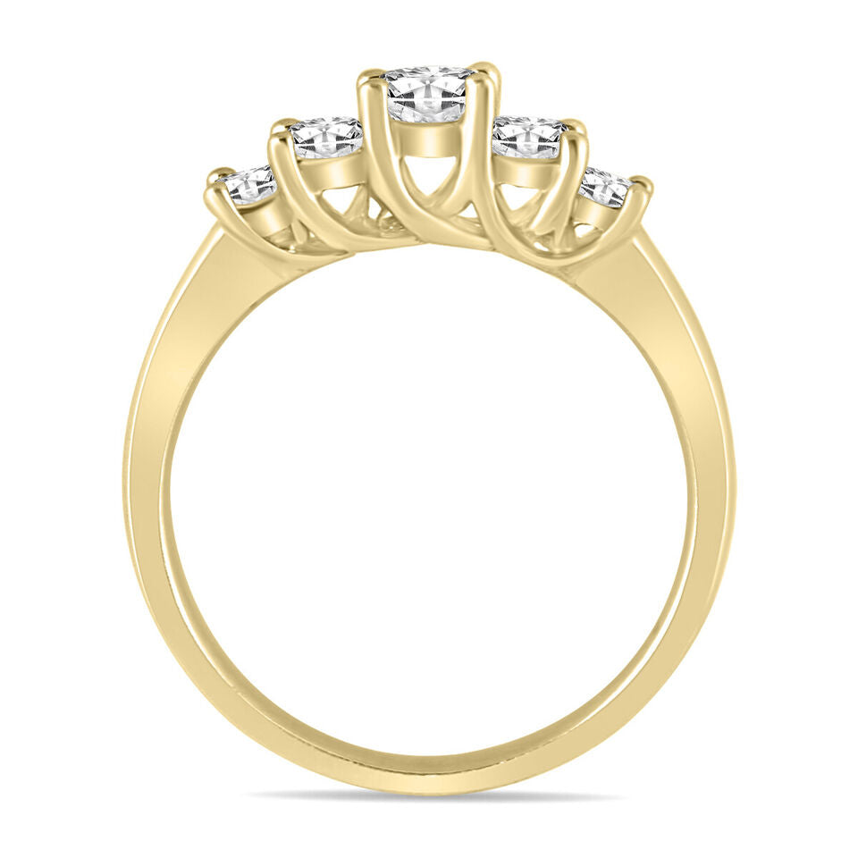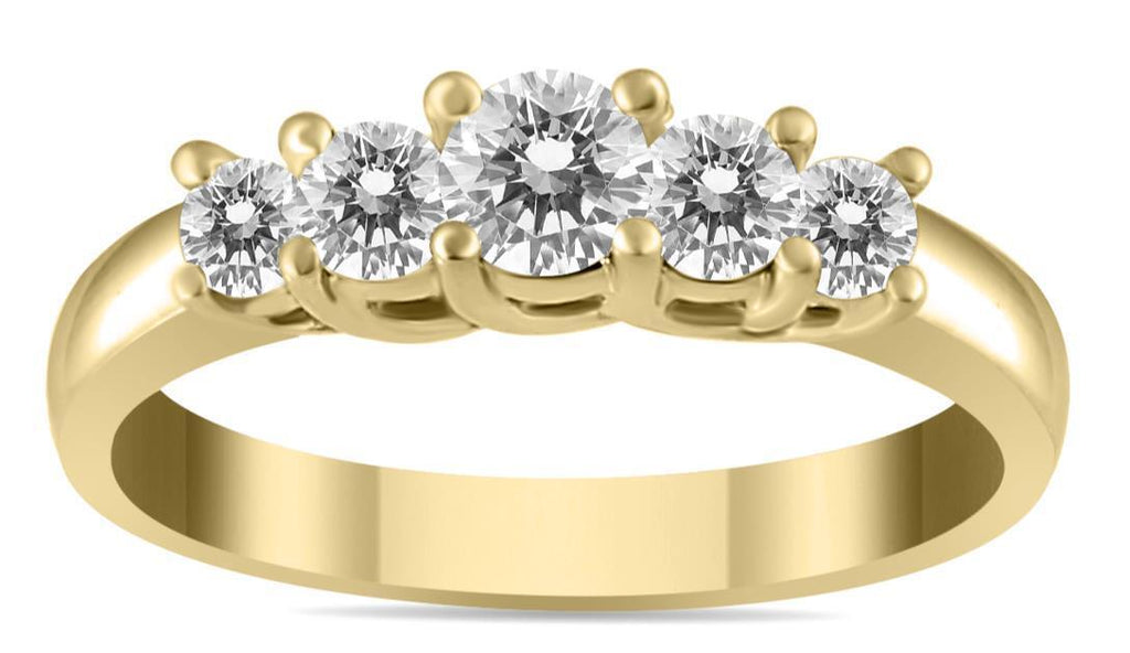 .75CT DIAMOND 14KT YELLOW GOLD 3D CLASSIC ROUND 5 STONE LUCIDA ANNIVERSARY RING