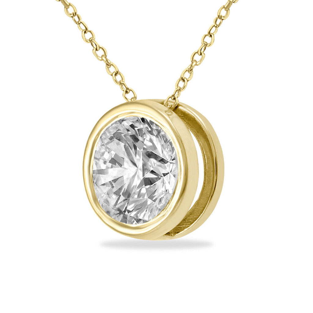.75CT DIAMOND 14KT YELLOW GOLD 3D CLASSIC ROUND BEZEL SOLITAIRE FLOATING PENDANT