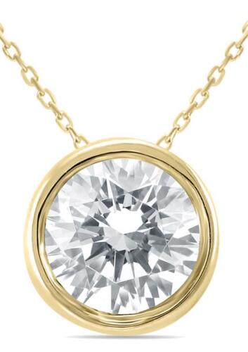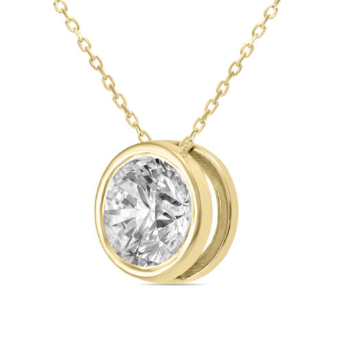 .75CT DIAMOND 14KT YELLOW GOLD 3D CLASSIC ROUND SOLITAIRE BEZEL FLOATING PENDANT
