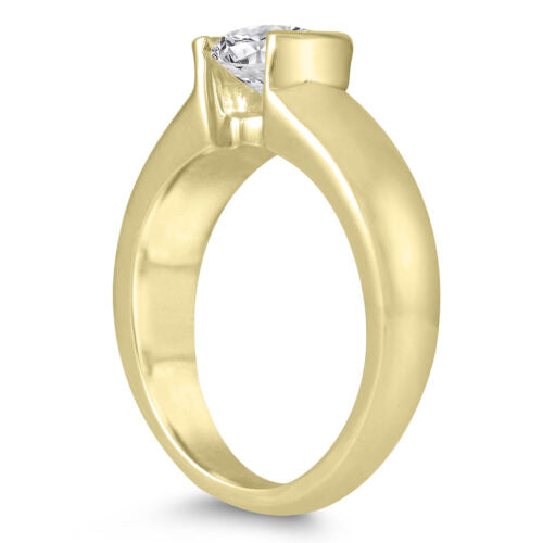 .75CT DIAMOND 14KT YELLOW GOLD 3D CLASSIC SOLIATIRE SEMI BEZEL ENGAGEMENT RING