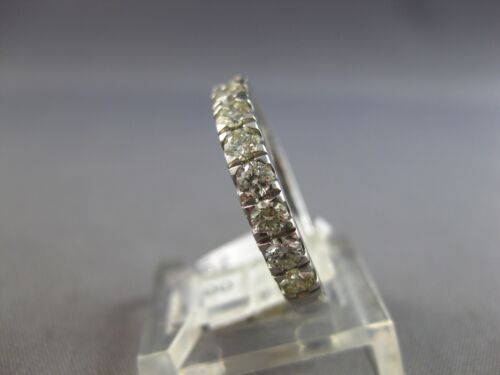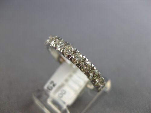 14KT WHITE GOLD WEDDING ANNIVERSARY RING. 3D FOUR PRONG SEMI ETERNITY DESIGN. ROUND DIAMONDS ARE F/G COLOR, VSSI CLARITY .76 CARATS. MEASURES 3mm WIDE. RING SIZE 7. CAN BE SIZED BY OUR MASTER JEWELER UPON REQUEST. WRITTEN APPRAISAL AVAILABLE. COMES IN A PRESENTABLE GIFT BOX.