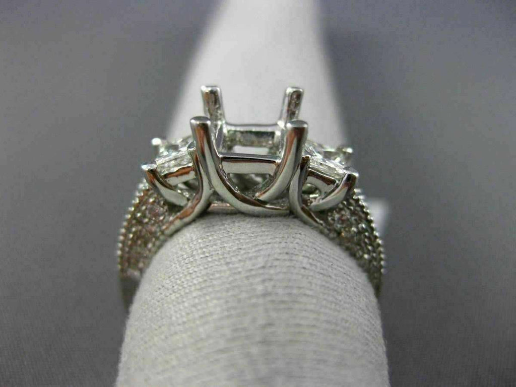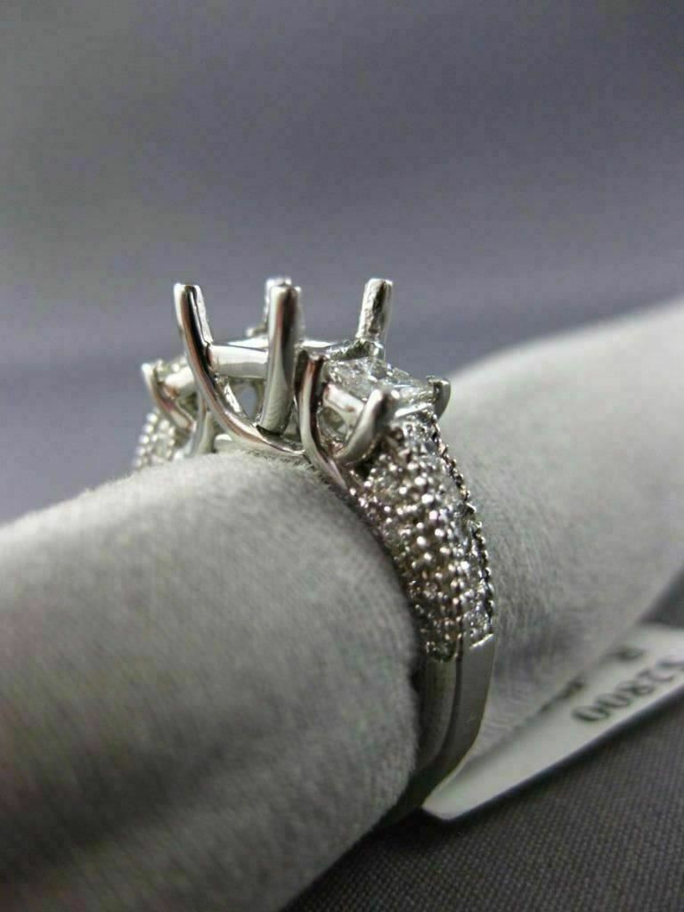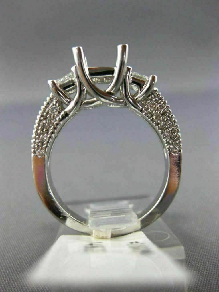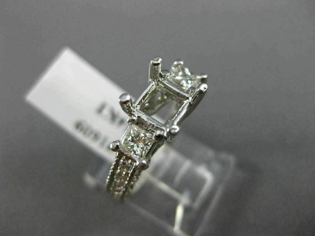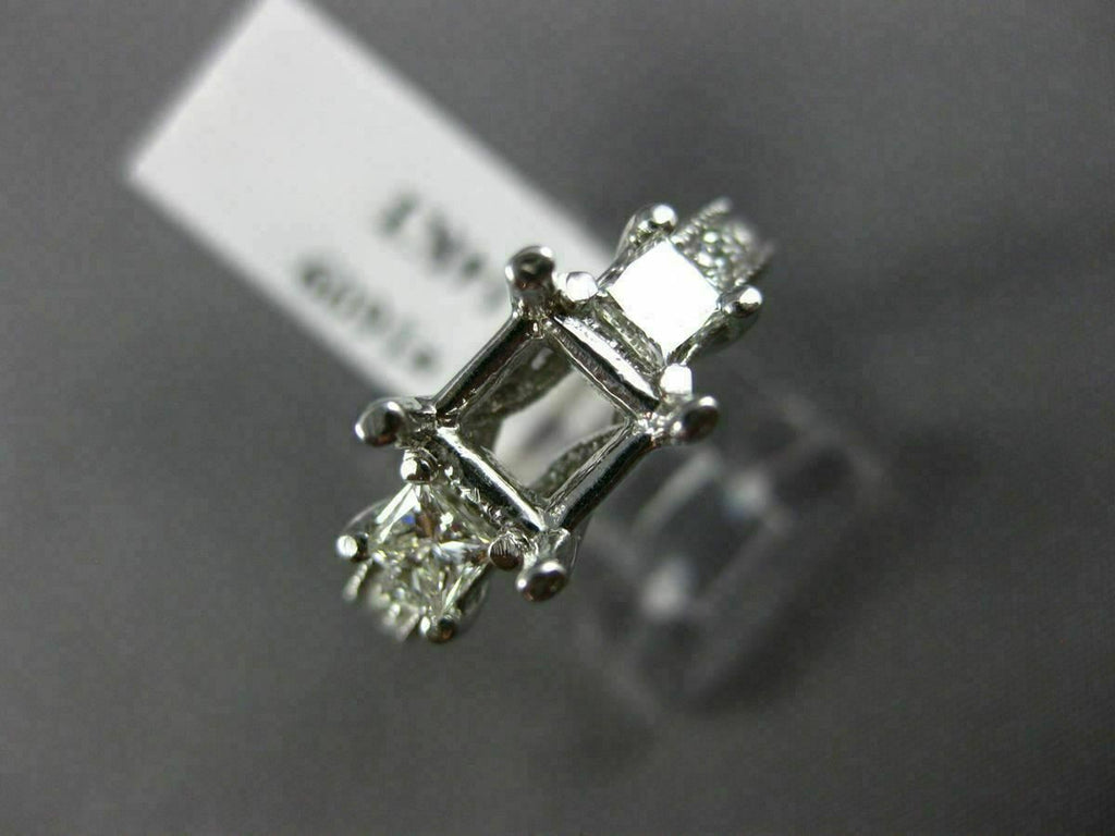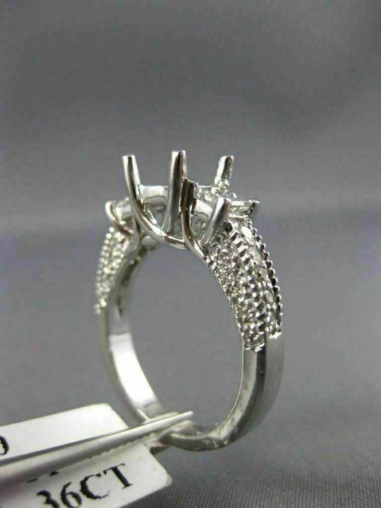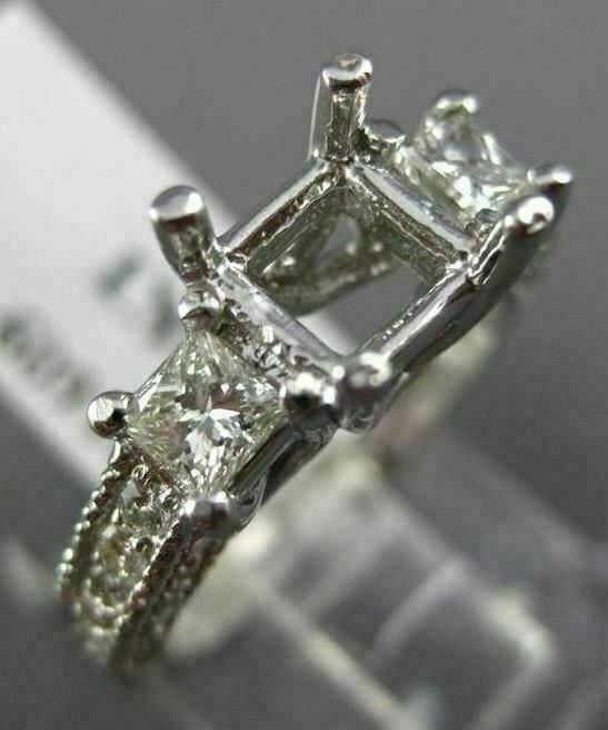 14KT WHITE GOLD SEMI MOUNT ENGAGEMENT RING. 3D LUCIDA PAST PRESENT FUTURE DESIGN. PRINCESS & ROUND DIAMONDS ARE F/G COLOR, VVS/VS CLARITY .76 CARATS. FITS UP TO 6mm ROUND OR PRINCESS STONE. MEASURES 7mm WIDE. RING SIZE 5.50. CAN BE SIZED BY OUR MASTER JEWELER UPON REQUEST. WRITTEN APPRAISAL AVAILABLE. COMES IN A PRESENTABLE GIFT BOX