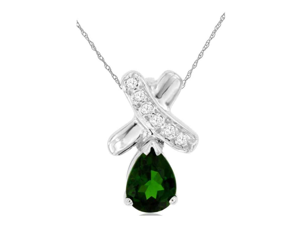 .77CT DIAMOND & AAA RUSSALITE 14KT WHITE GOLD PEAR SHAPE & ROUND X LOVE PENDANT