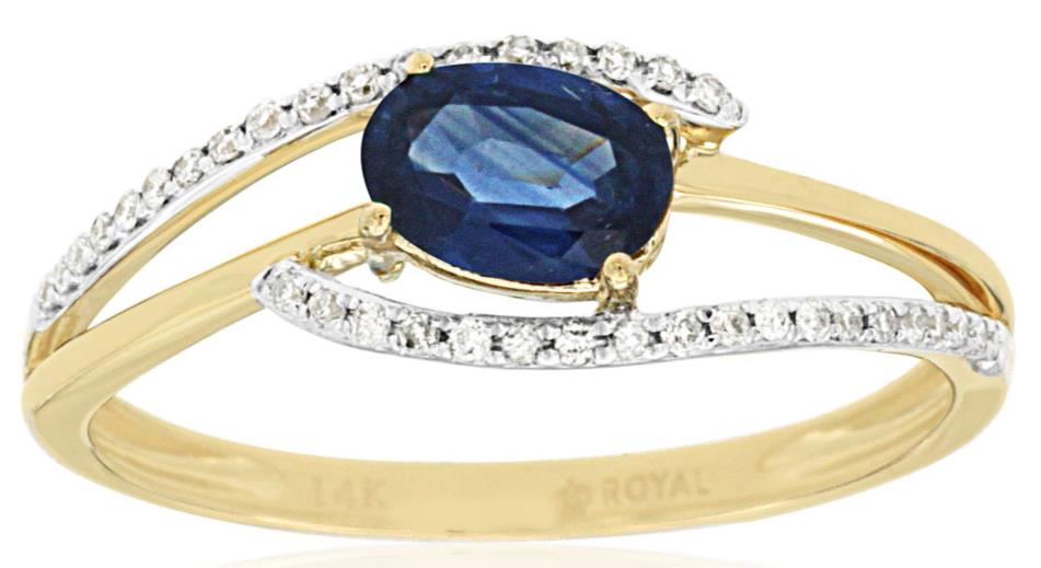 14KT YELLOW GOLD LOVE RING. 3D CRISS CROSS DESIGN. ROUND DIAMONDS ARE F/G COLOR, VSSI CLARITY .12 CARATS. AAA OVAL SAPPHIRE IS .65 CARATS. RING SIZE 7. CAN BE SIZED BY OUR MASTER JEWELER UPON REQUEST. WRITTEN APPRAISAL AVAILABLE. COMES IN A PRESENTABLE GIFT BOX.