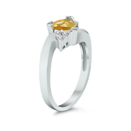 14KT WHITE GOLD LOVE RING. 3D CRISS CROSS DESIGN. ROUND DIAMONDS ARE G/H COLOR, VSSI CLARITY .08 CARATS. AAA TRILLION CUT CITRINE IS .70 CARATS. RING SIZE 7. CAN BE SIZED BY OUR MASTER JEWELER UPON REQUEST. WRITTEN APPRAISAL AVAILABLE. COMES IN A PRESENTABLE GIFT BOX.