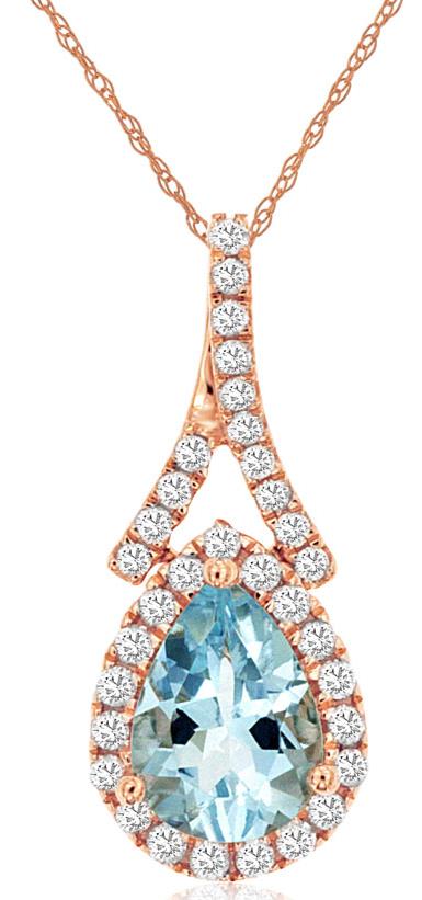 0.80CT DIAMOND & AAA AQUAMARINE 14K ROSE GOLD PEAR SHAPE & ROUND FLOATING PENDANT