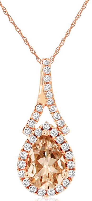 0.80CT DIAMOND & AAA MORGANITE 14KT ROSE GOLD PEAR SHAPE & ROUND FLOATING PENDANT