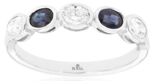 .80CT DIAMOND & AAA SAPPHIRE 14KT WHITE GOLD OVAL 5 STONE BEZEL ANNIVERSARY RING