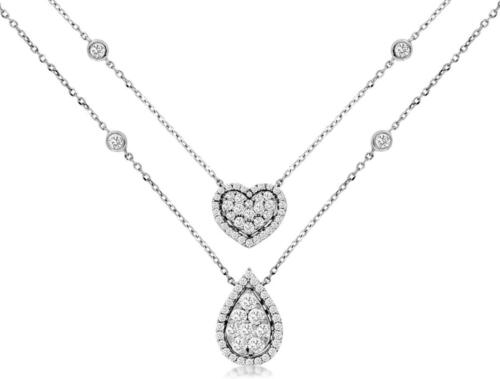 14KT WHITE GOLD LOVE NECKLACE. 3D ROUND AND SQUARE SQUARE BY THE YARD DOUBLE STRAND DESIGN. ROUND DIAMONDS ARE F/G COLOR, VSSI CLARITY .81 CARATS. 17" INCHES LONG.