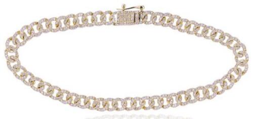 .85CT DIAMOND 14KT YELLOW GOLD 3D CLASSIC CUBAN ETERNITY UNISEX TENNIS BRACELET