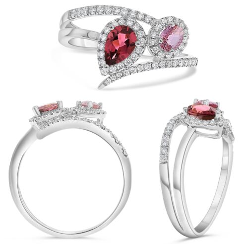 .86CT DIAMOND & AAA PINK SAPPHIRE & AAA PINK TOURMALINE 14KT WHITE GOLD 3D RING