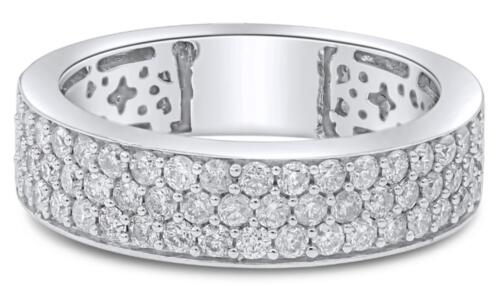 .88CT DIAMOND 14KT WHITE GOLD 3 ROW PAVE 3/4TH ETERNITY WEDDING ANNIVERSARY RING