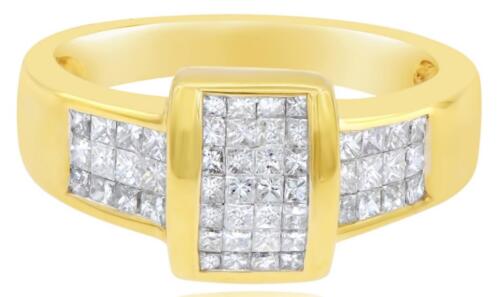 14KT YELLOW GOLD FUN UNISEX RING. 3D CLASSIC INVISIBLE RECTANGULAR DESIGN. PRINCESS CUT DIAMONDS ARE F/G COLOR, VSSI CLARITY .88 CARATS. RING SIZE 7. CAN BE SIZED BY OUR MASTER JEWELER UPON REQUEST. WRITTEN APPRAISAL AVAILABLE. COMES IN A PRESENTABLE GIFT BOX.