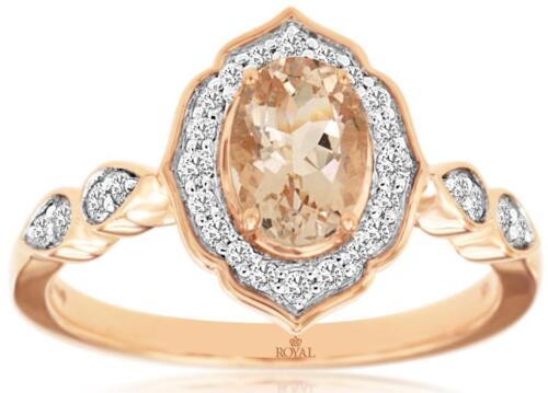 14KT ROSE GOLD FUN RING. 3D FILIGREE FLORAL DESIGN. ROUND DIAMONDS ARE F/G COLOR, VSSI CLARITY .21 CARATS. AAA ROUND MORGANITE IS .67 CARATS. CAN BE SIZED BY OUR MASTER JEWELER UPON REQUEST. WRITTEN APPRAISAL AVAILABLE. COMES IN A PRESENTABLE GIFT BOX.