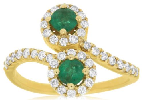.90CT DIAMOND & AAA EMERALD 14K YELLOW GOLD ROUND DOUBLE FLOWER CRISS CROSS RING
