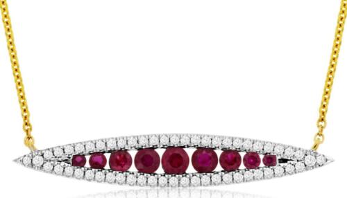 .90CT DIAMOND & AAA RUBY 14K YELLOW GOLD GRADUATING LEAF MARQUISE SHAPE NECKLACE