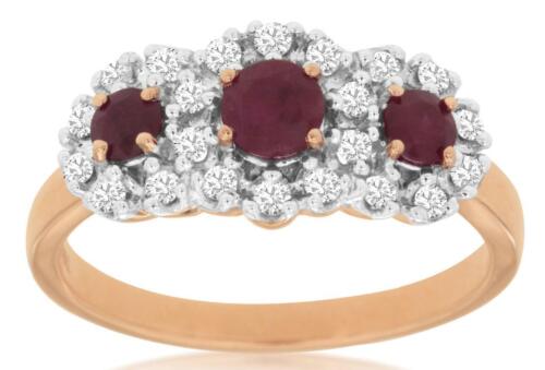 .90CT DIAMOND & AAA RUBY 14KT ROSE GOLD ROUND 3 STONE FLOWER ANNIVERSARY RING