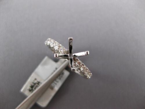 18KT WHITE GOLD SIZEABLE SEMI-MOUNT ENGAGEMENT RING. 3D CLASSIC FOUR PRONG ETERNITY DESIGN. ROUND DIAMONDS ARE F/G COLOR, VSSI CLARITY .91 CARATS. FITS ROUND STONE UP TO 6.5MM. RING MEASURES 7.5mm WIDE. RING SIZE 6.5. CAN BE SIZED BY OUR MASTER JEWELER UPON REQUEST. WRITTEN APPRAISAL AVAILABLE. COMES IN A PRESENTABLE GIFT BOX.